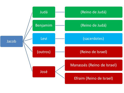 - José – depois de umas peripécias causadas pela rivalidade e oposição dos seus irmãos, acabou por ir para o Egipto abrindo a porta deste país aos israelitas; deu origem às tribos de Manassés e Efraim (nomes dos seus dois filhos) eternas rivais da tribo de Judá; estas duas tribos eram as principais que deram origem ao reino de Israel.